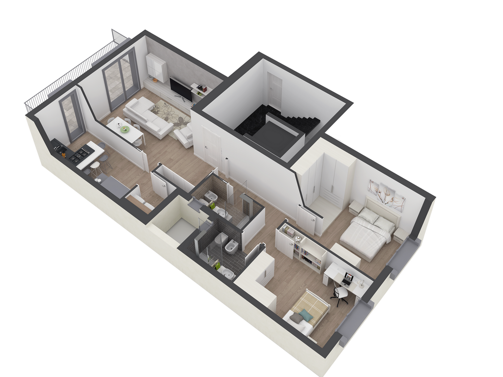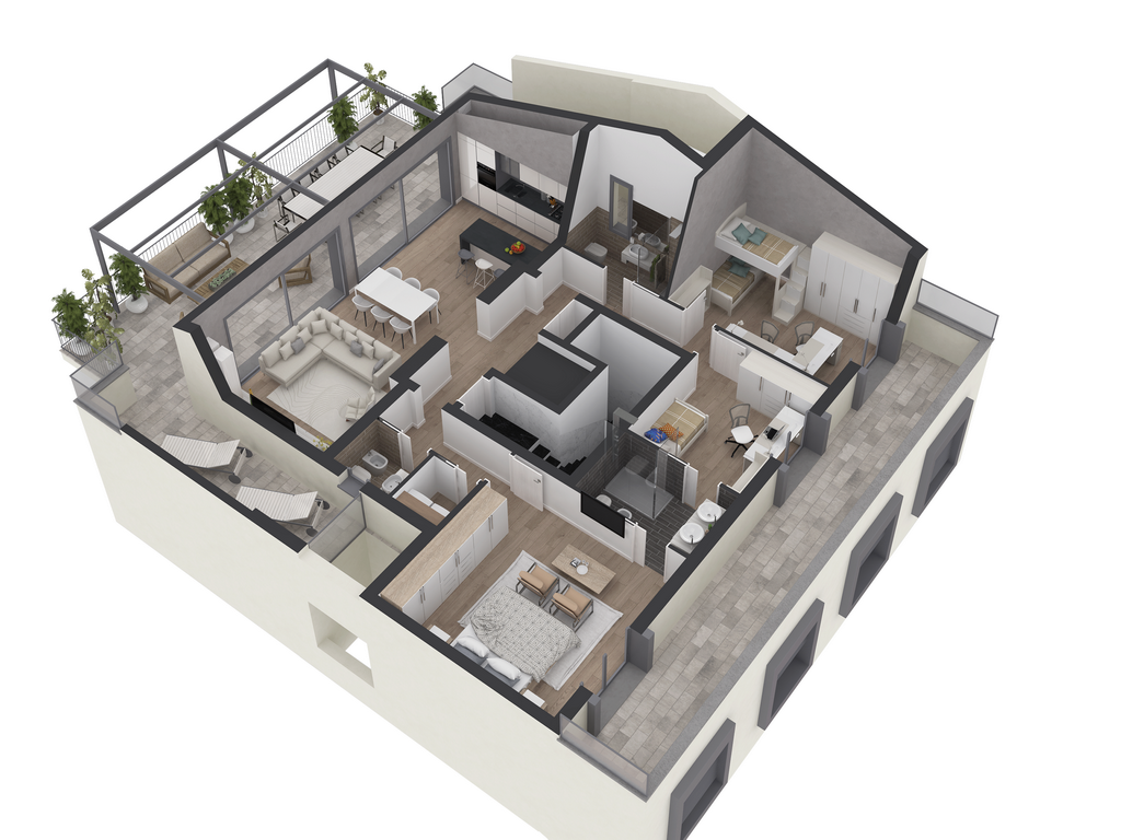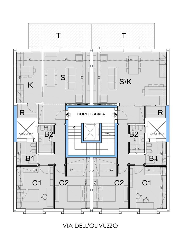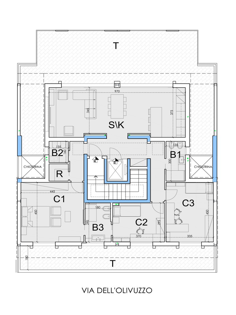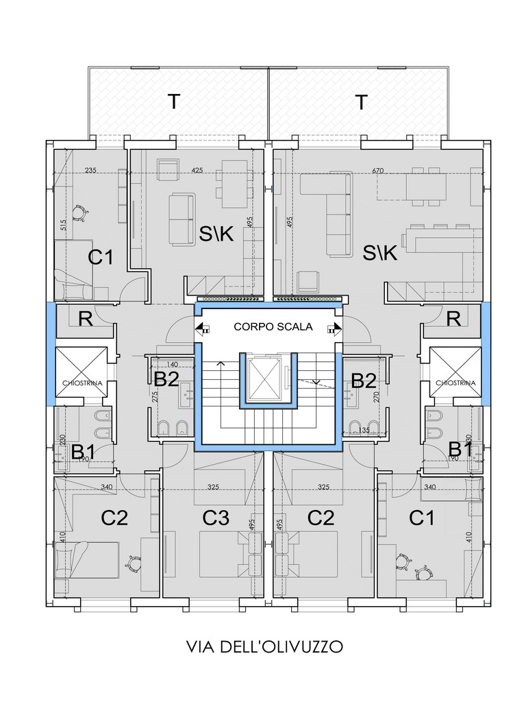 Gli appartamenti saranno dotati di spaziose zone giorno con due/tre camere, corredati di balconi e/o terrazzi abitabili.
